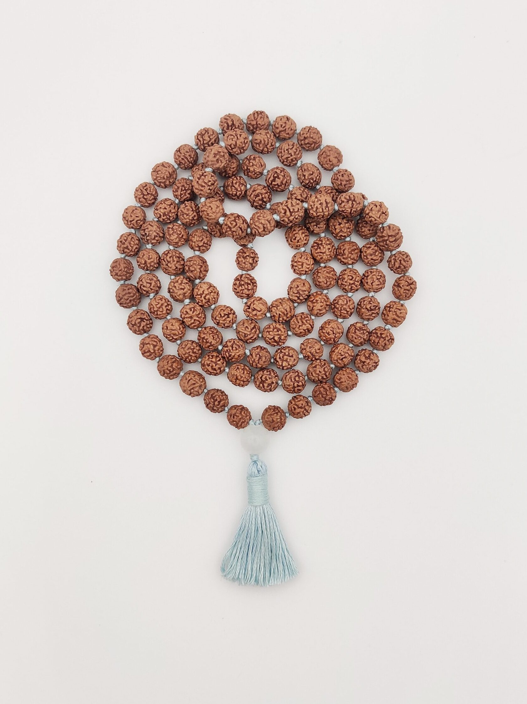 rudrākṣa ist ein Samen des Elaeocarpus-ganitrus Baums, der im Hinduismus als heilig gilt. Die Bäume werden ca. 18-24 m hoch und kommen von der Ganges-Ebene in den Ausläufern des Himalaya bis nach Nepal vor. Die Samen werden hauptsächlich aus Indien, Indonesien und Nepal für mālā und Schmuck bezogen. Das Wort rudrākṣa ist ein zusammengesetztes Sanskritwort aus rudra und akṣa und bedeutet „Tränen des Herrn Rudra“. rudra ist einer von Śivas vedischen Namen und akṣa bedeutet „Tränen“.